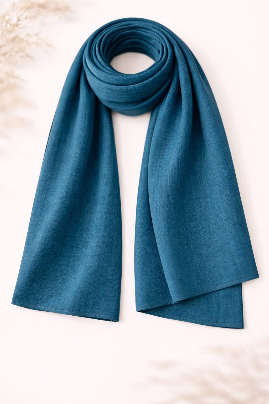 A smooth, lightweight scarf in a rich deep teal shade, designed for an effortless drape and everyday elegance. Perfect for both casual wear and refined styling.